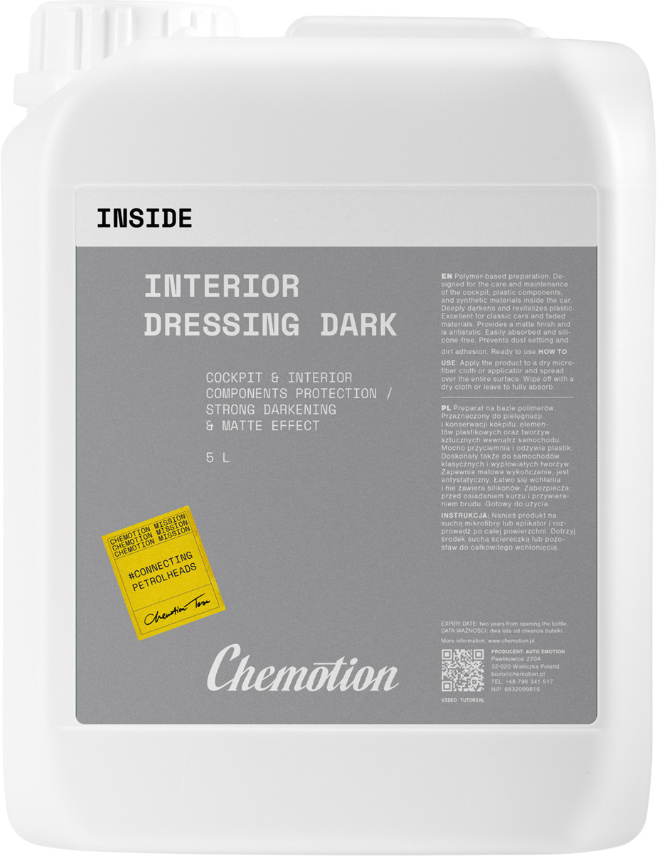 Preparat na bazie polimerów. Przeznaczony do pielęgnacji i konserwacji kokpitu, elementów plastikowych oraz tworzyw sztucznych wewnątrz samochodu.